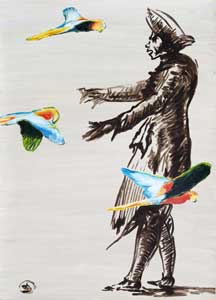 Papageien, 2015, Acryl/Karton, 70 x 50cm
