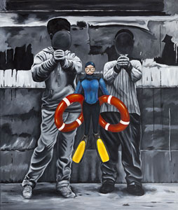 Jungs, 2009, Acryl/Lw, 165 x 140cm